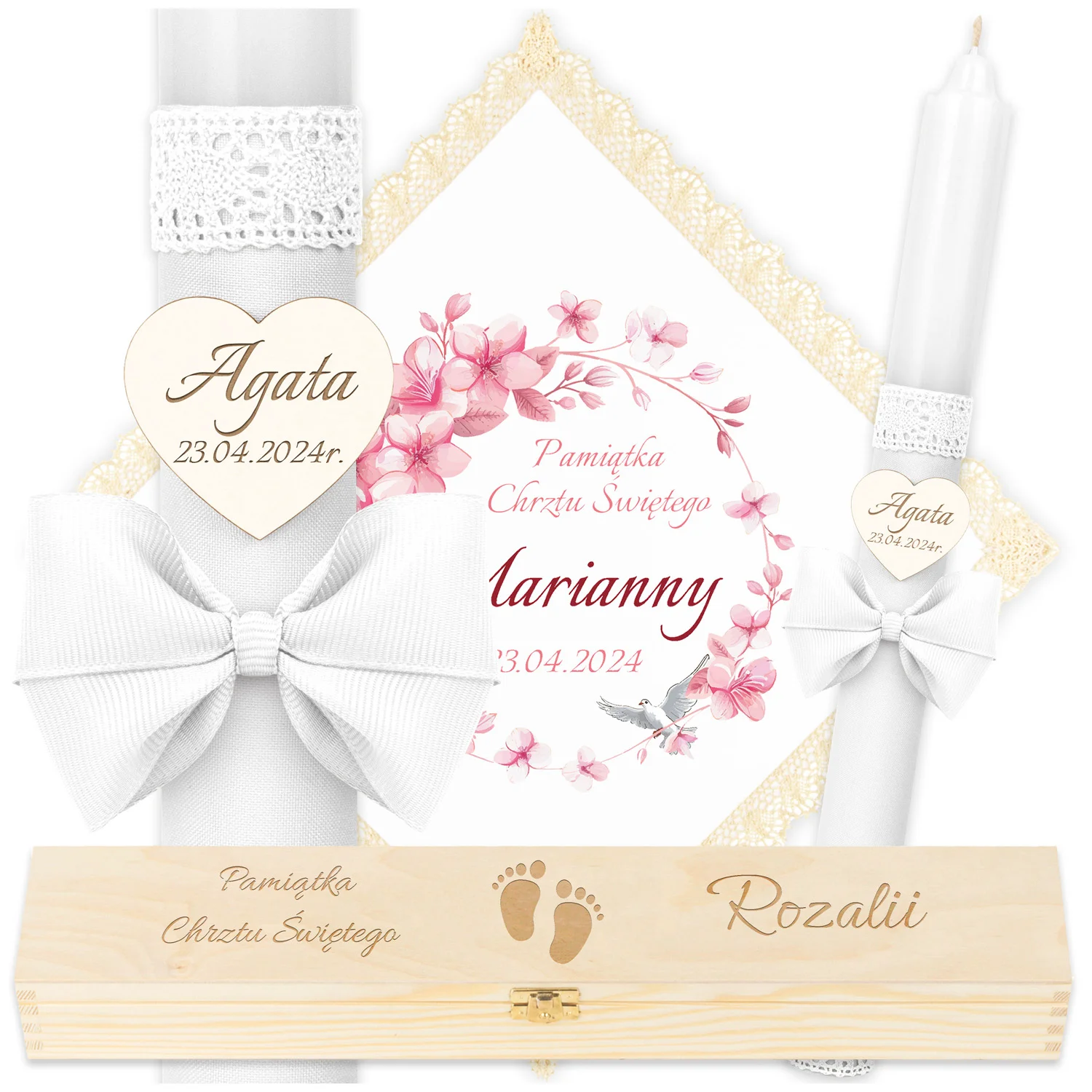 Świeca i Szatka do chrztu + Pudełko na chrzest C76S44P11/11