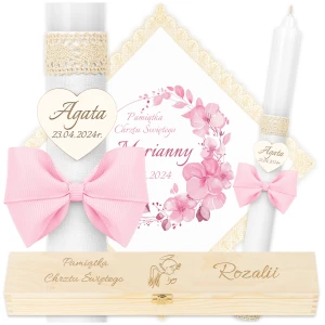 ✅ świeca na chrzest wraz z personalizacją (imieniem dziecka i datą chrztu),