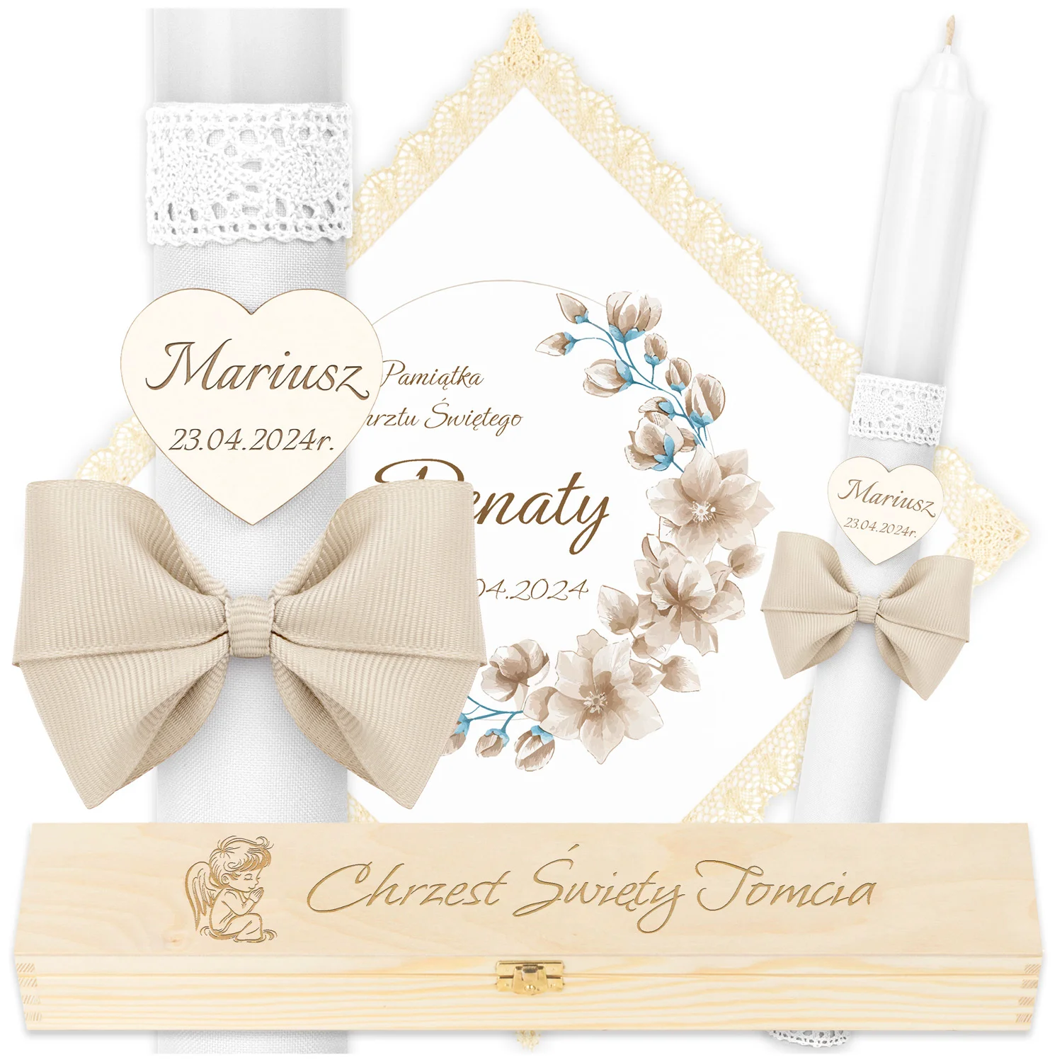 ✅ świeca na chrzest wraz z personalizacją (imieniem dziecka i datą chrztu),