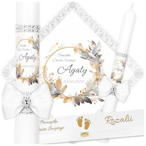 ✅ personalizacja (imię oraz data chrztu) na świecy oraz szatce.