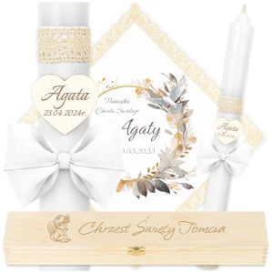 Świeca i kremowa szatka na chrzest + Pudełko do Chrztu C72S25P11/20