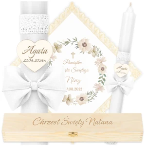 Świeca i kremowa szatka na chrzest + Pudełko do Chrztu C76S12P11/10
