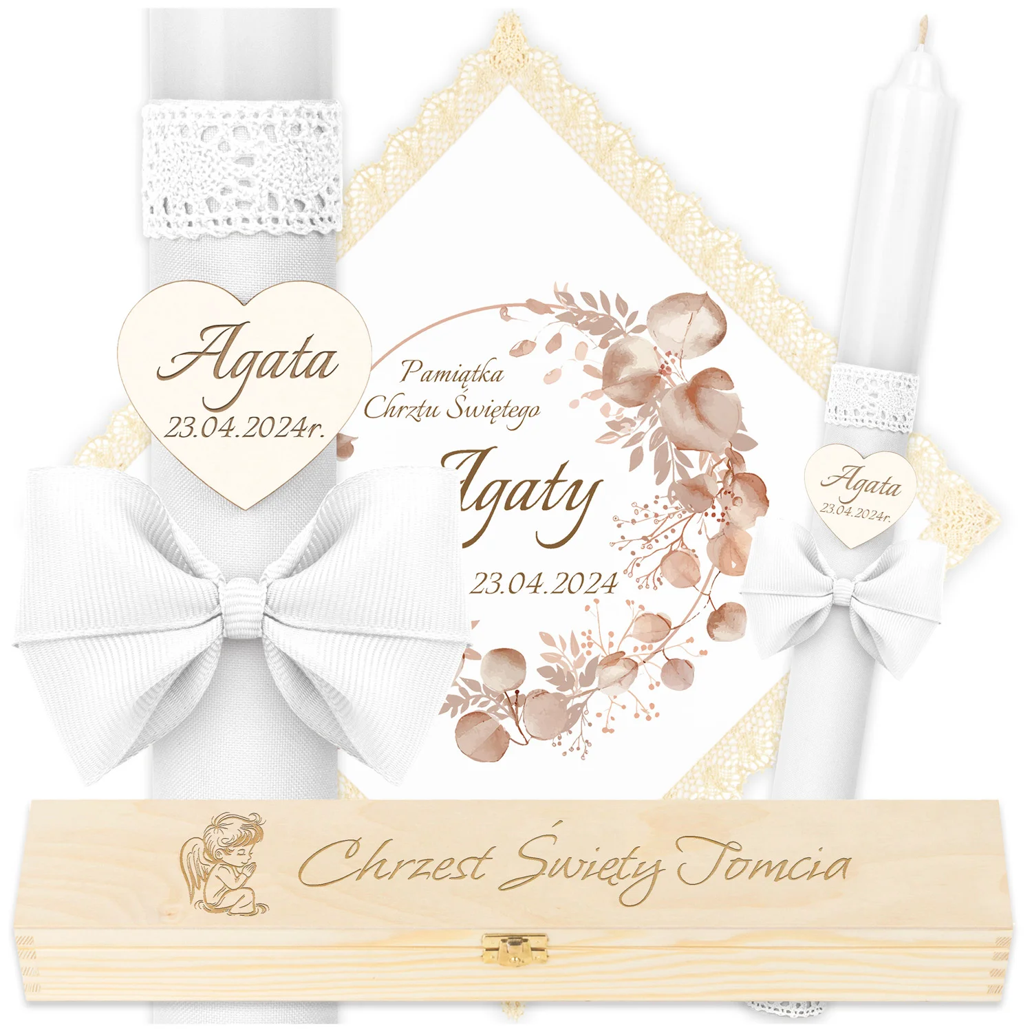 Świeca i kremowa szatka na chrzest + Pudełko do Chrztu C76S55P11/20