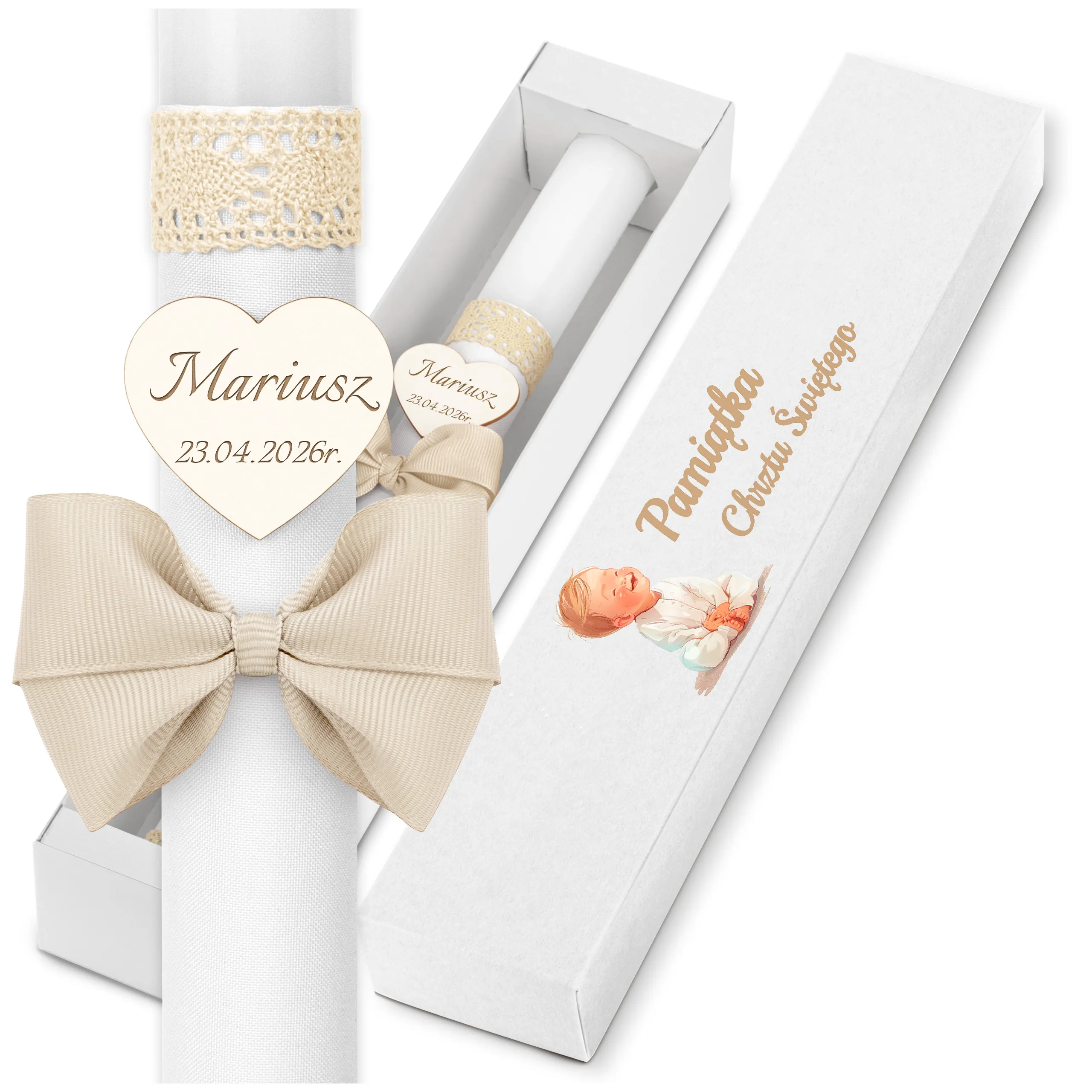 ✅ świeca na chrzest wraz z personalizacją (imieniem dziecka i datą chrztu),