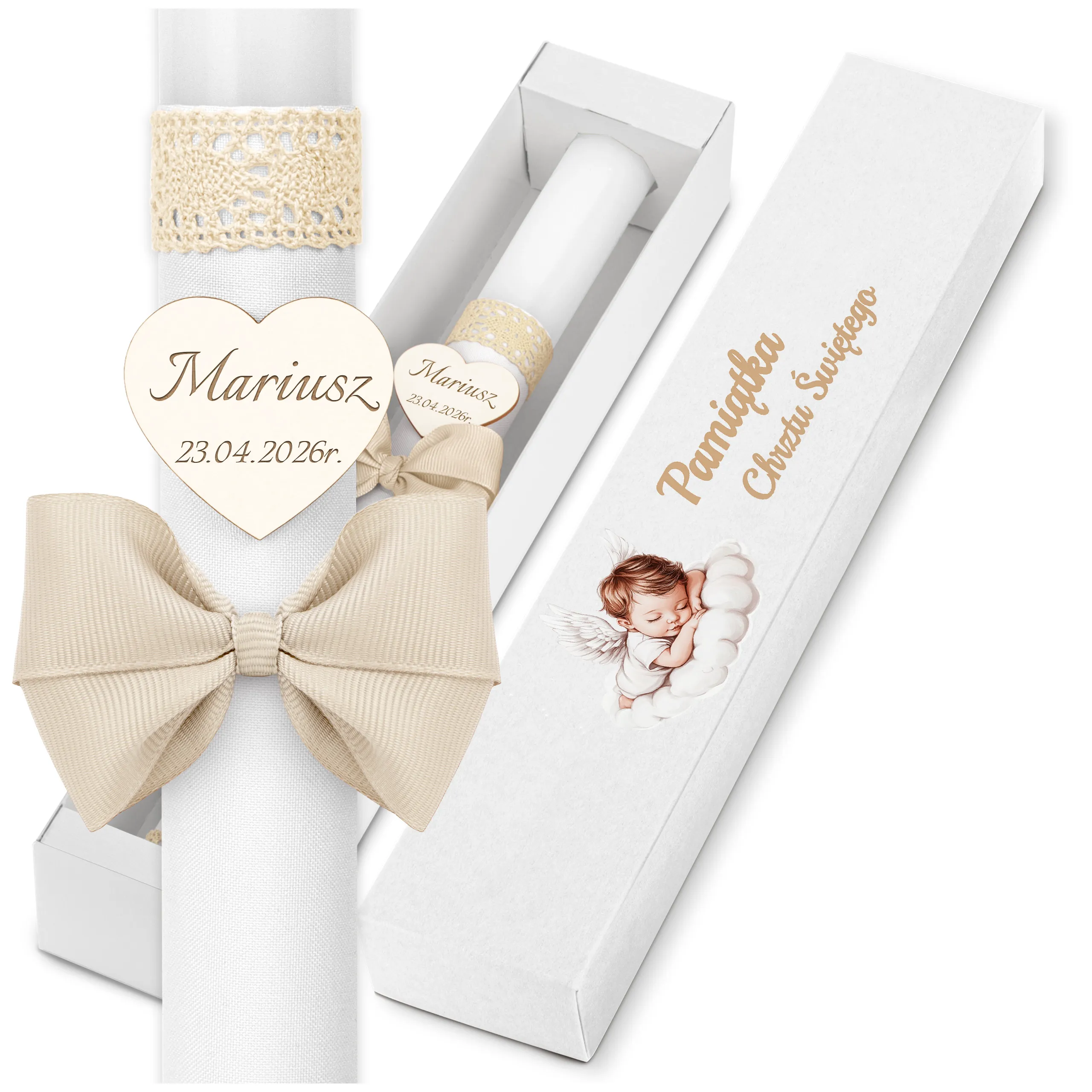 ✅ świeca na chrzest wraz z personalizacją (imieniem dziecka i datą chrztu),