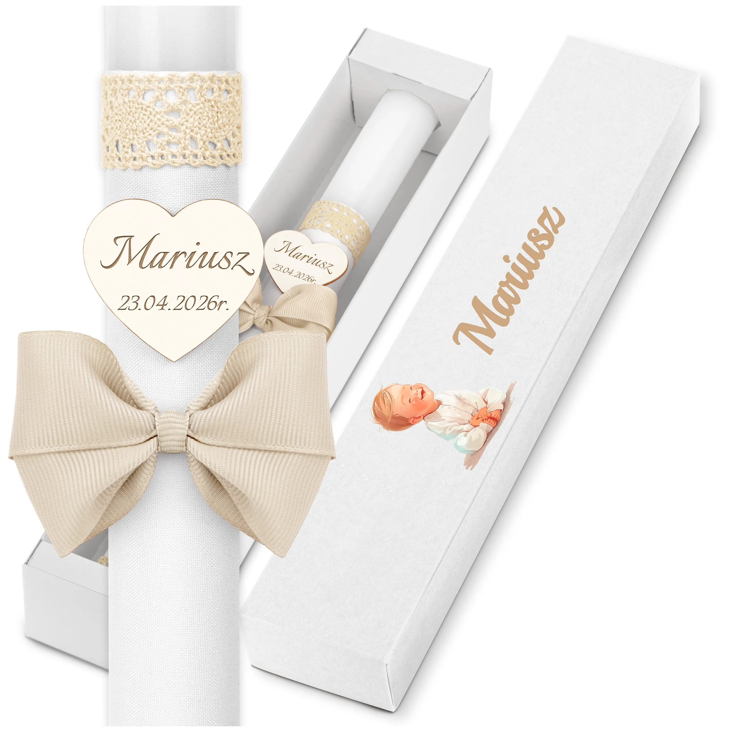 ✅ świeca na chrzest wraz z personalizacją (imieniem dziecka i datą chrztu),