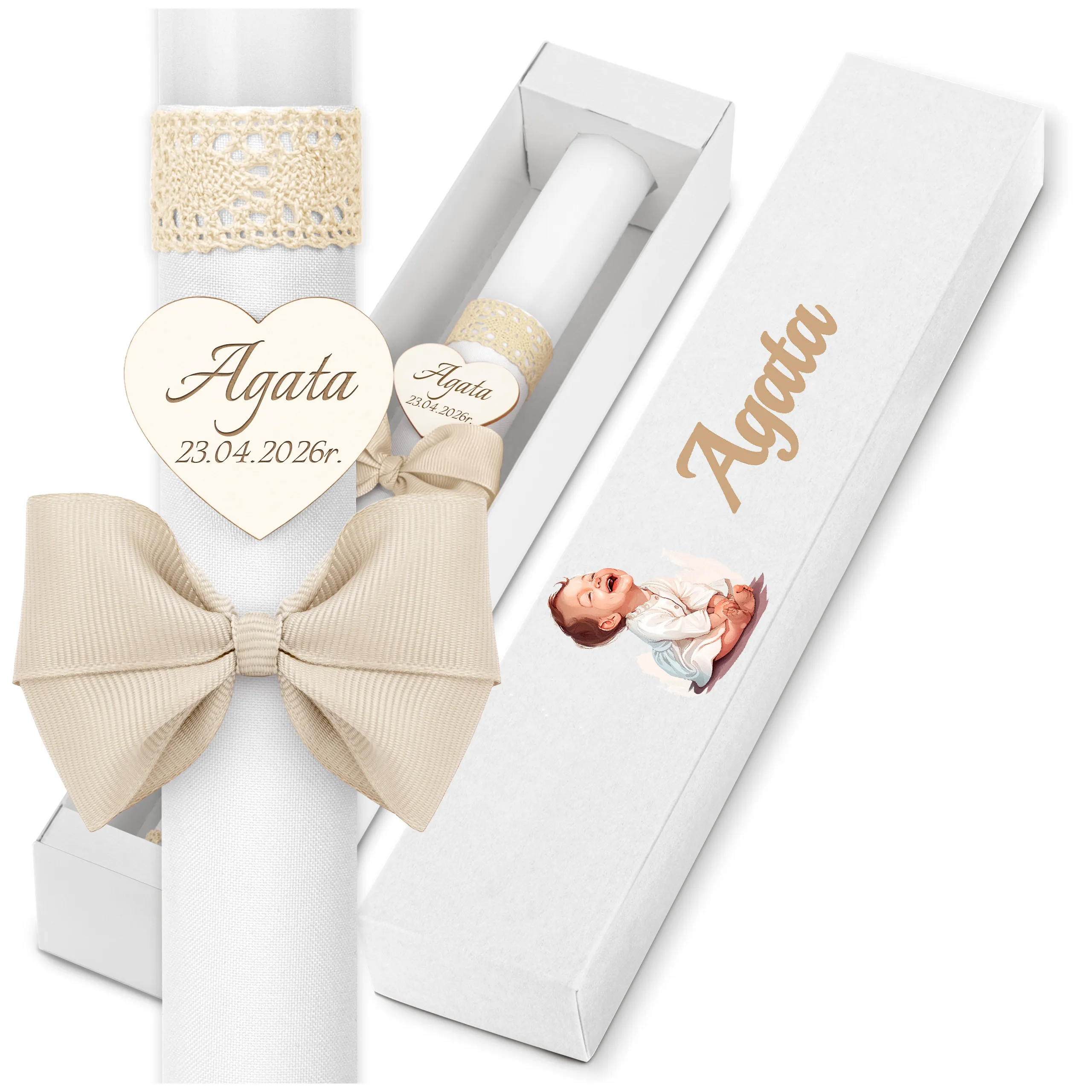 ✅ świeca na chrzest wraz z personalizacją (imieniem dziecka i datą chrztu),