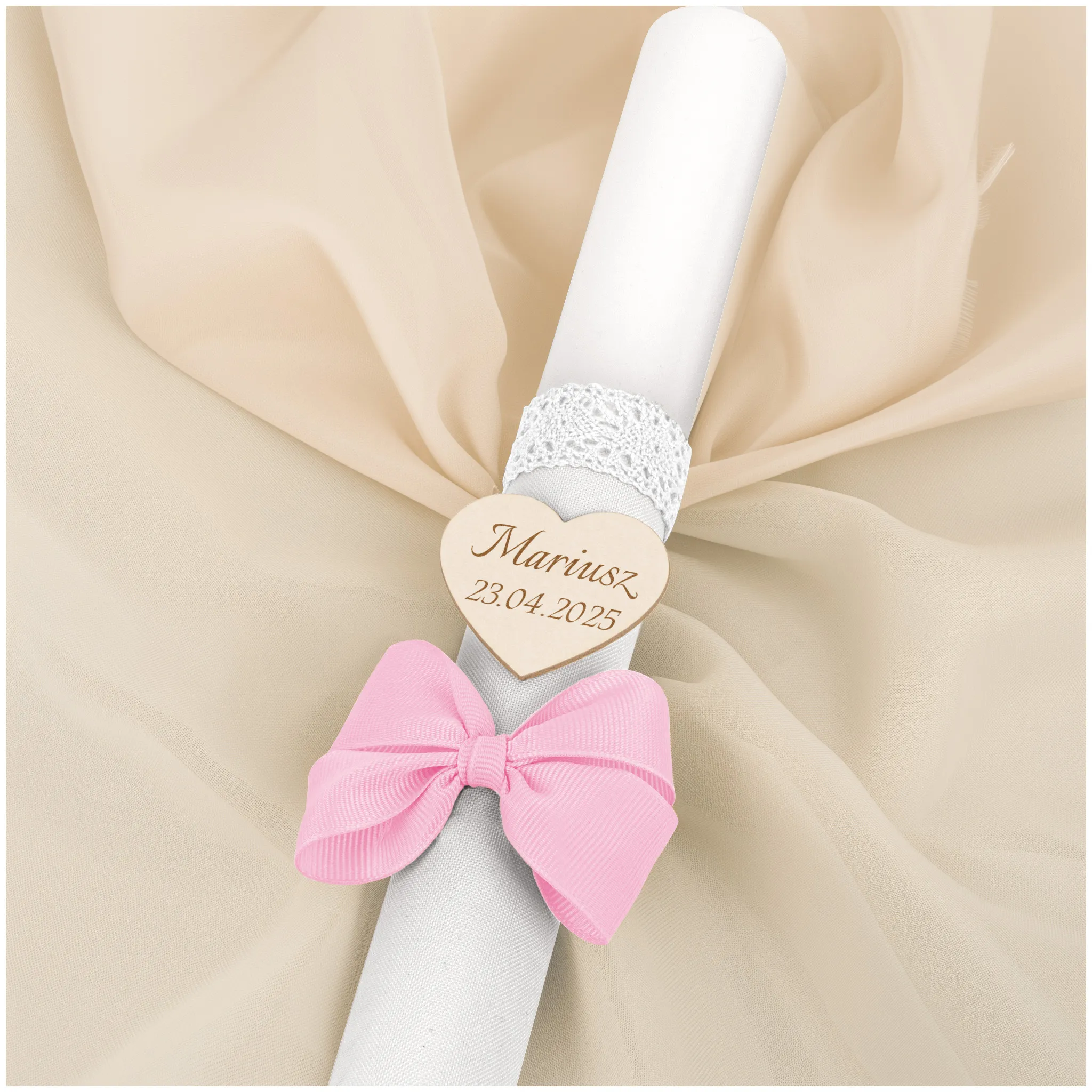 ✅ kokarda na świecy - materiał satynowy w kolorze różowym,