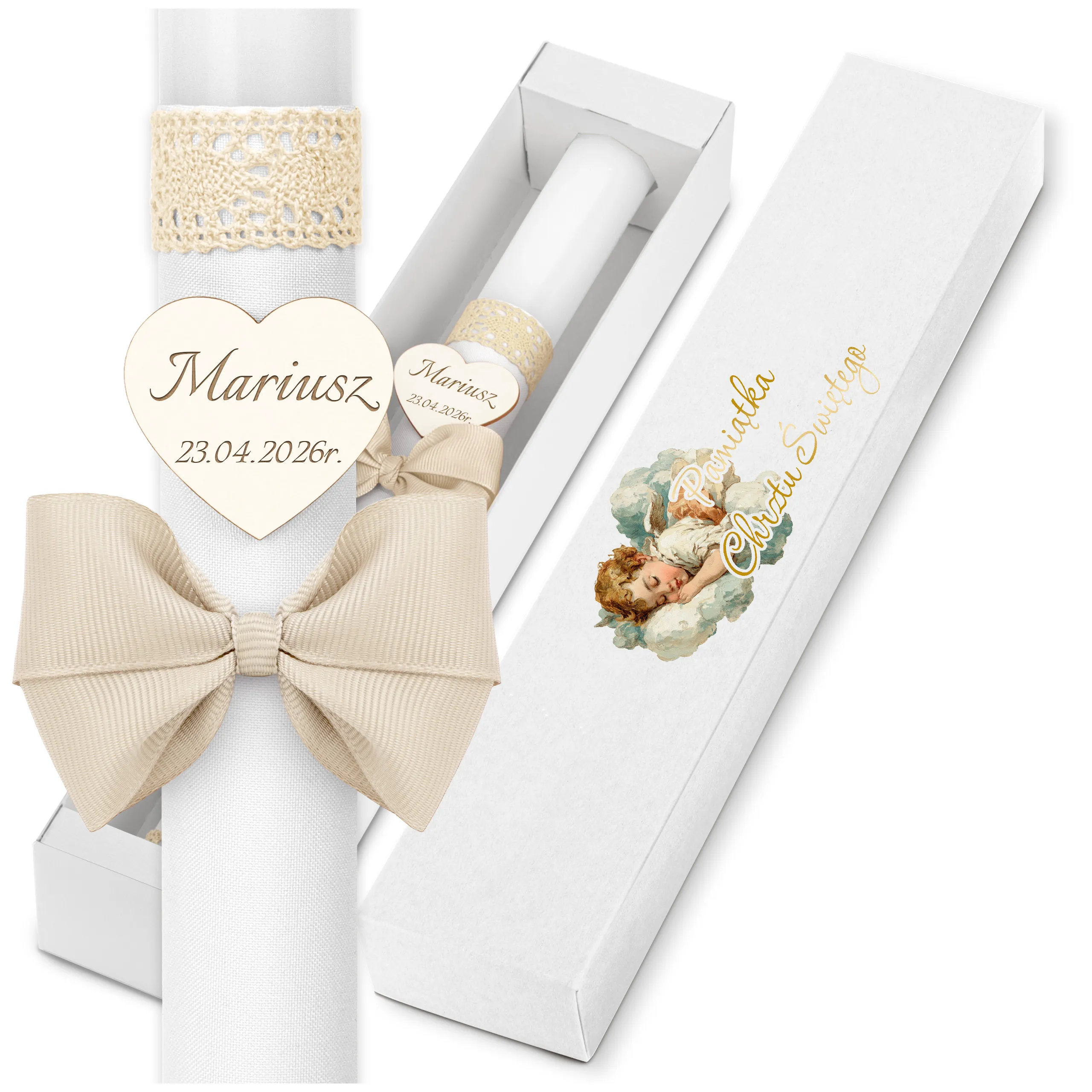 Świeca i pudełko do Chrztu Zestaw na Chrzest C7xP57