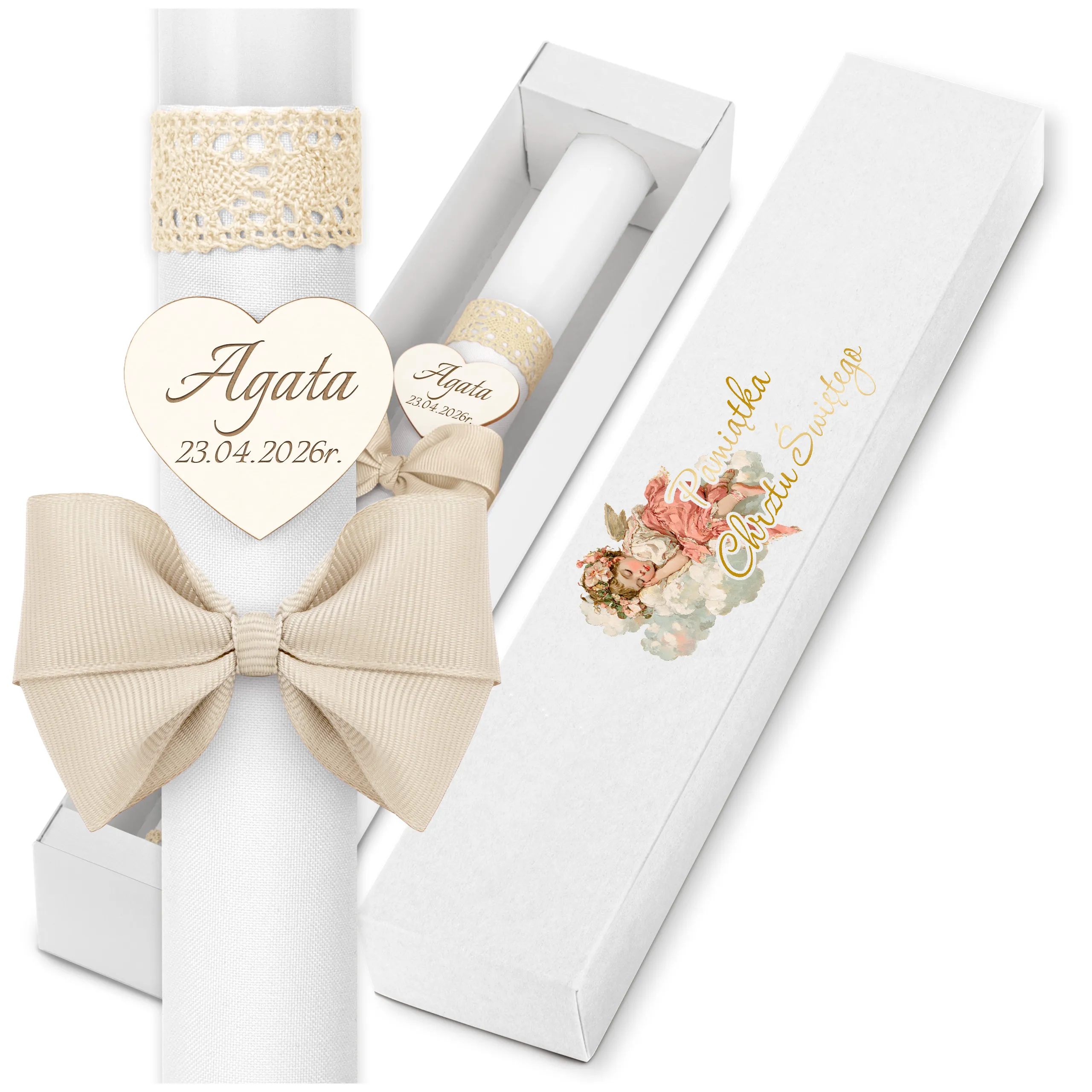Świeca i pudełko do Chrztu Zestaw na Chrzest C7xP58