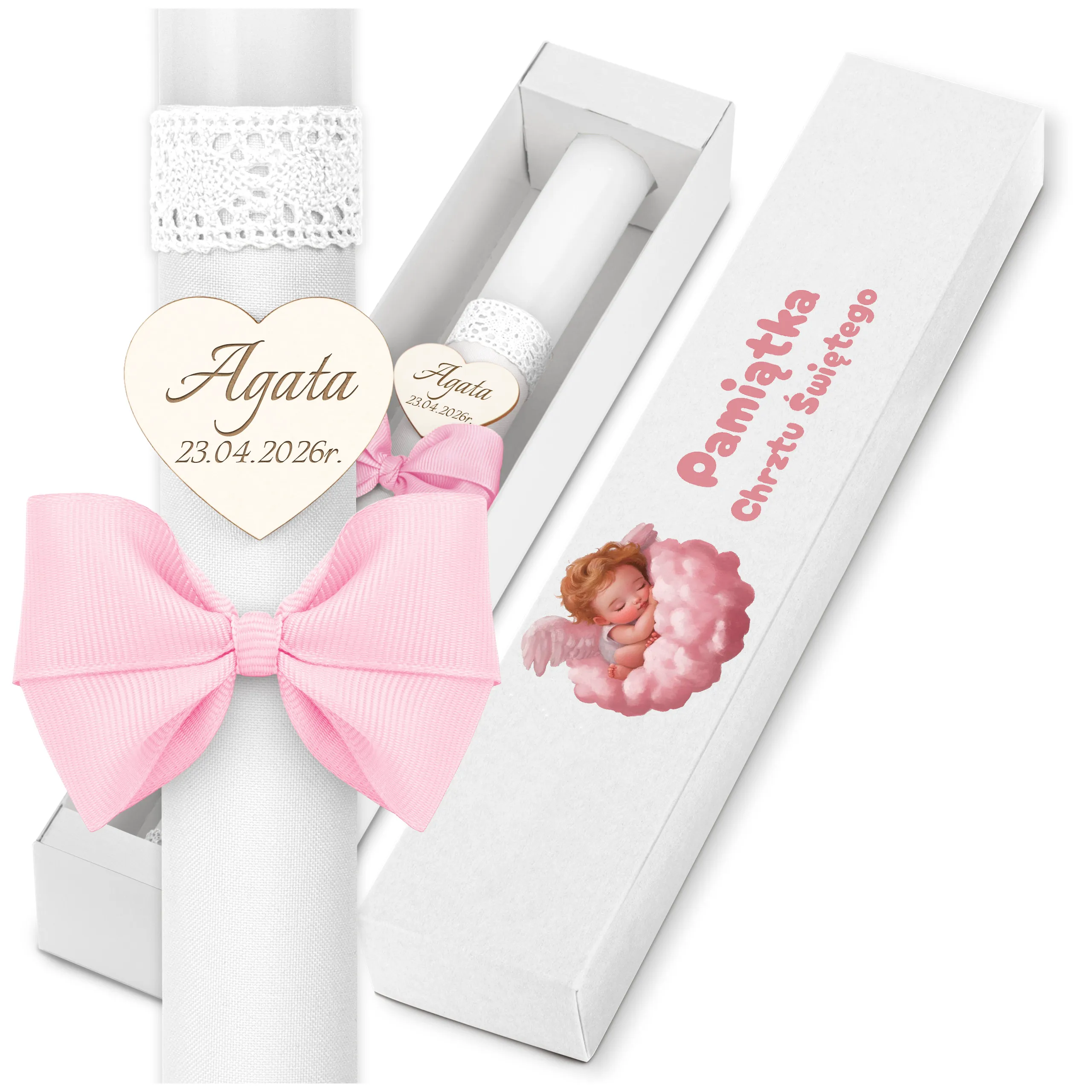 ✅ świeca na chrzest wraz z personalizacją (imieniem dziecka i datą chrztu),
