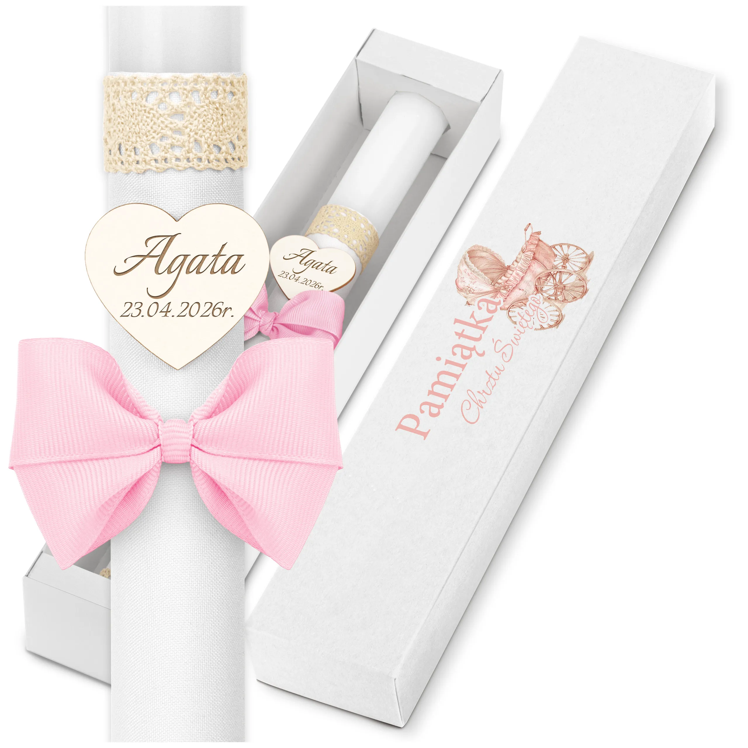 ✅ świeca na chrzest wraz z personalizacją (imieniem dziecka i datą chrztu),