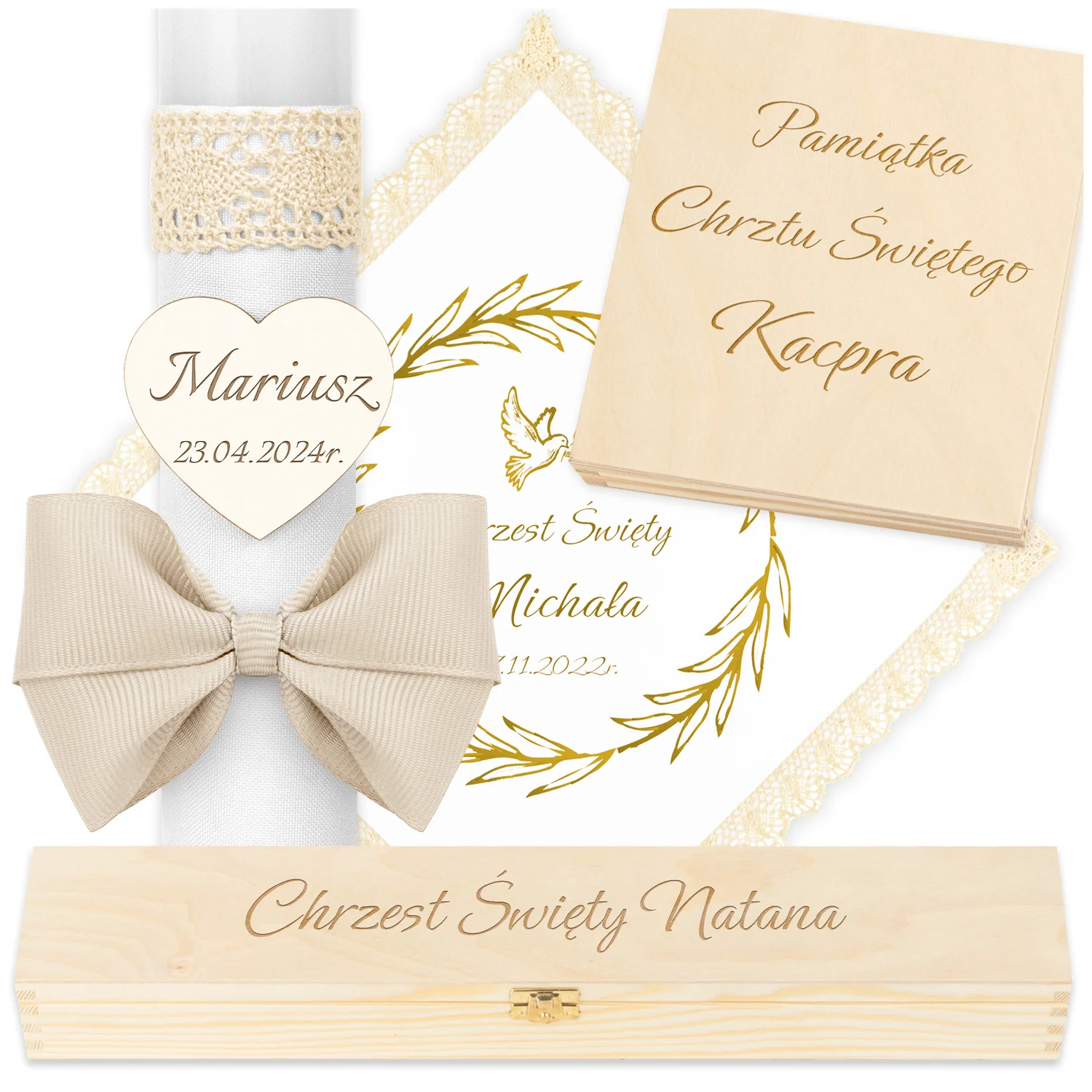 ✅ świeca na chrzest wraz z personalizacją (imieniem dziecka i datą chrztu),