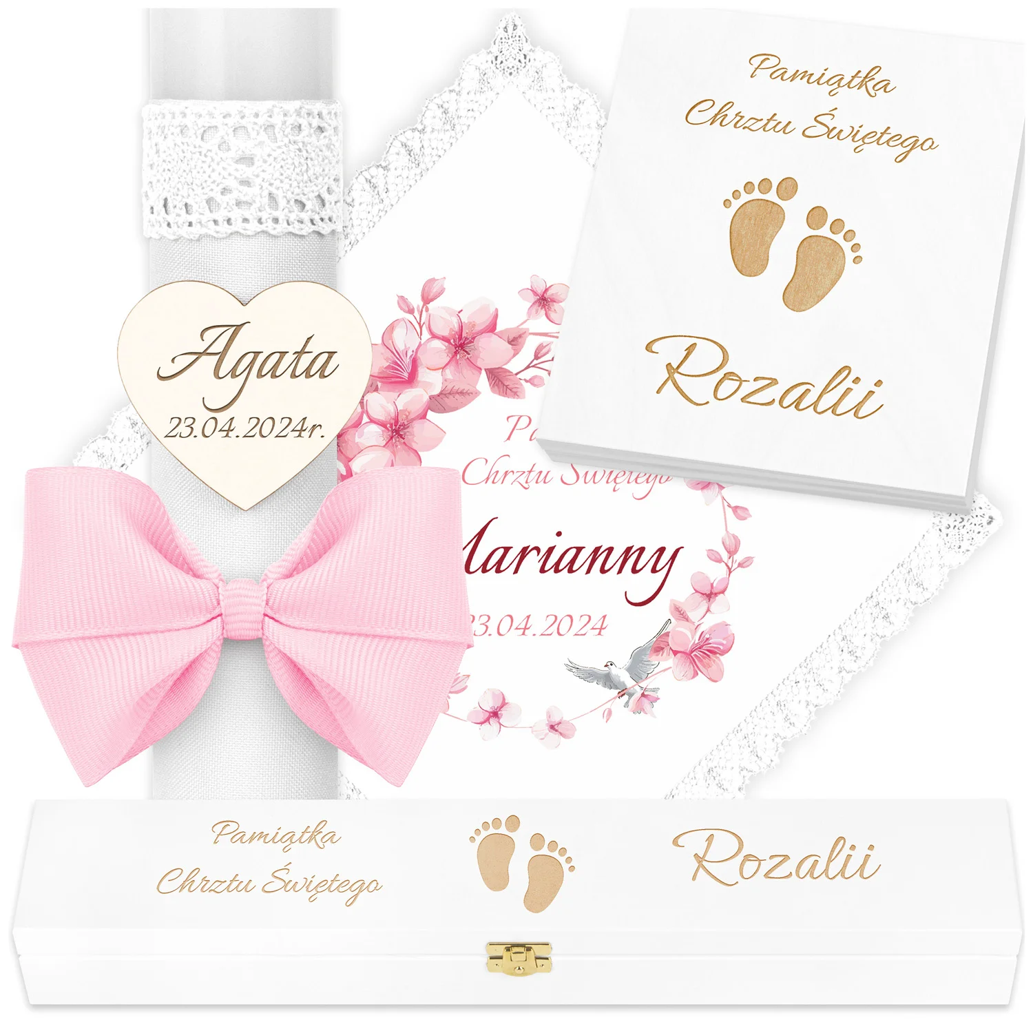 ✅ świeca na chrzest wraz z personalizacją (imieniem dziecka i datą chrztu),