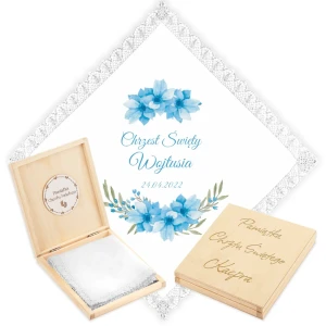 Personalizowane szatka i grawerowane pudełko z imieniem - piękna pamiątka i idealny prezent dla chrześniaka.