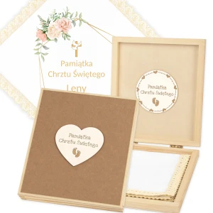 Personalizowane szatka i grawerowane pudełko z imieniem - piękna pamiątka i idealny prezent dla chrześniaka.