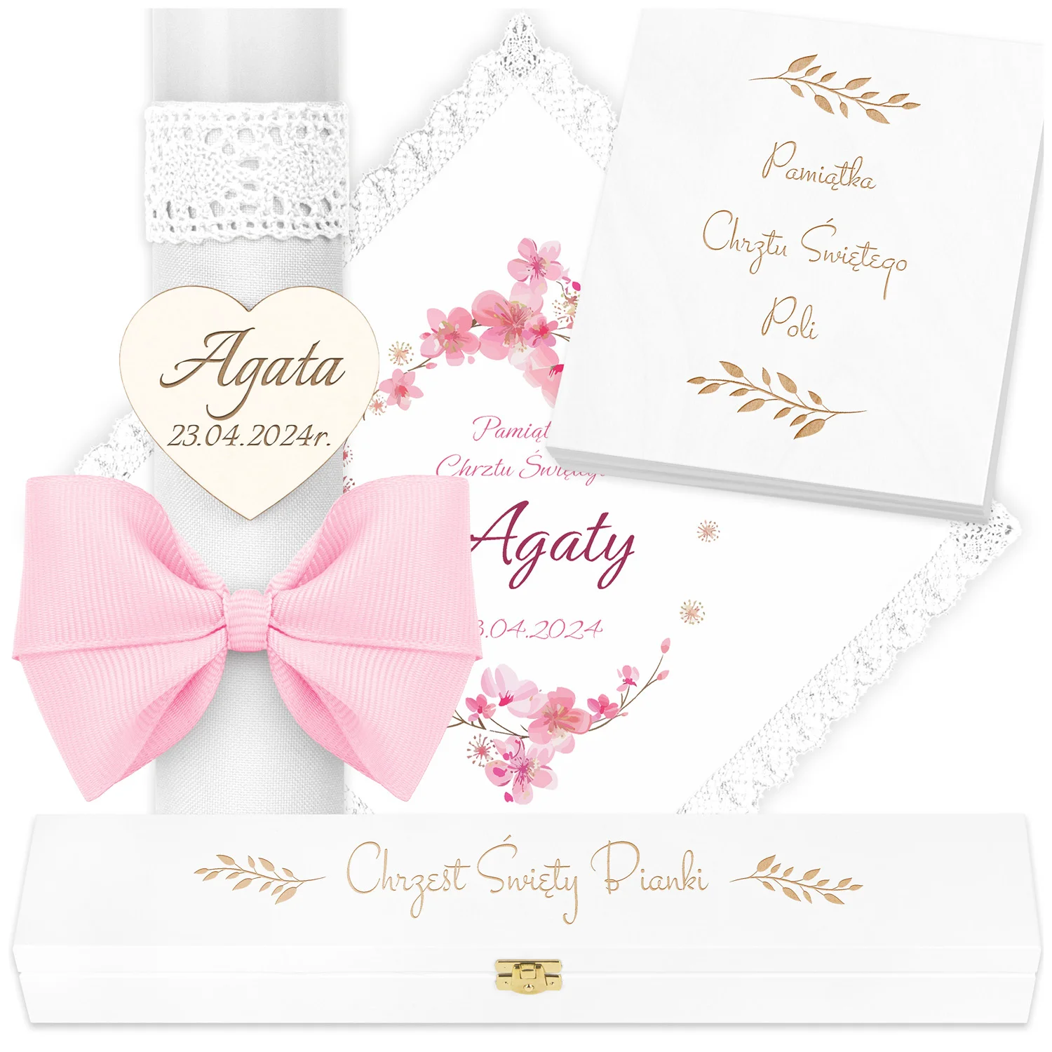 Zestaw do Chrztu - Świeca i Szatka + 2 Pudełka na chrzest C77SB47P13/9SZB1